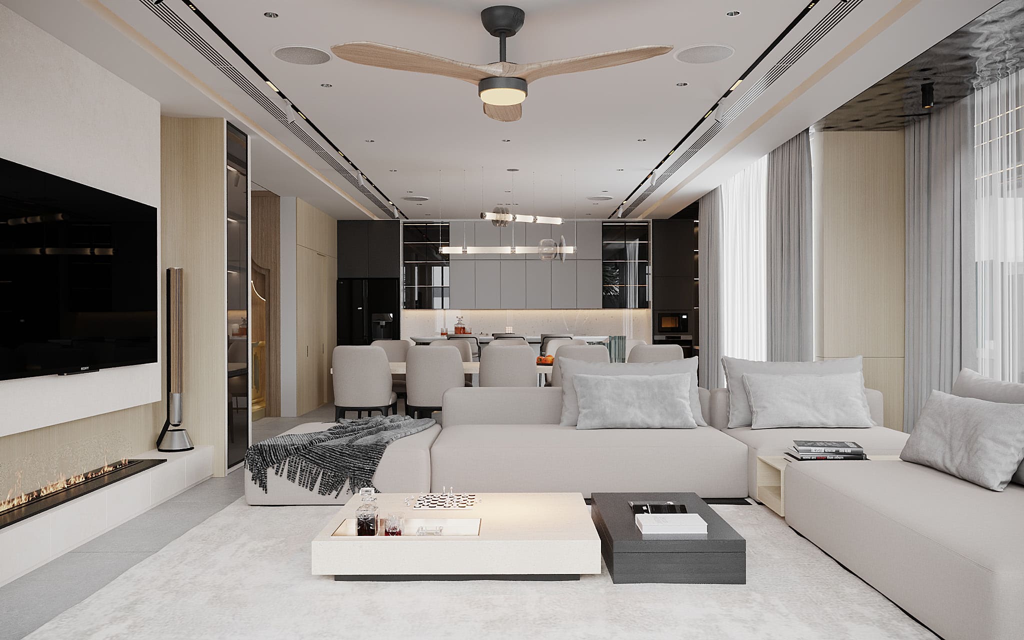 Không gian khách – bếp: tối ưu sự kết nối, vừa tiện nghi, vừa thể hiện sự đẳng cấp.