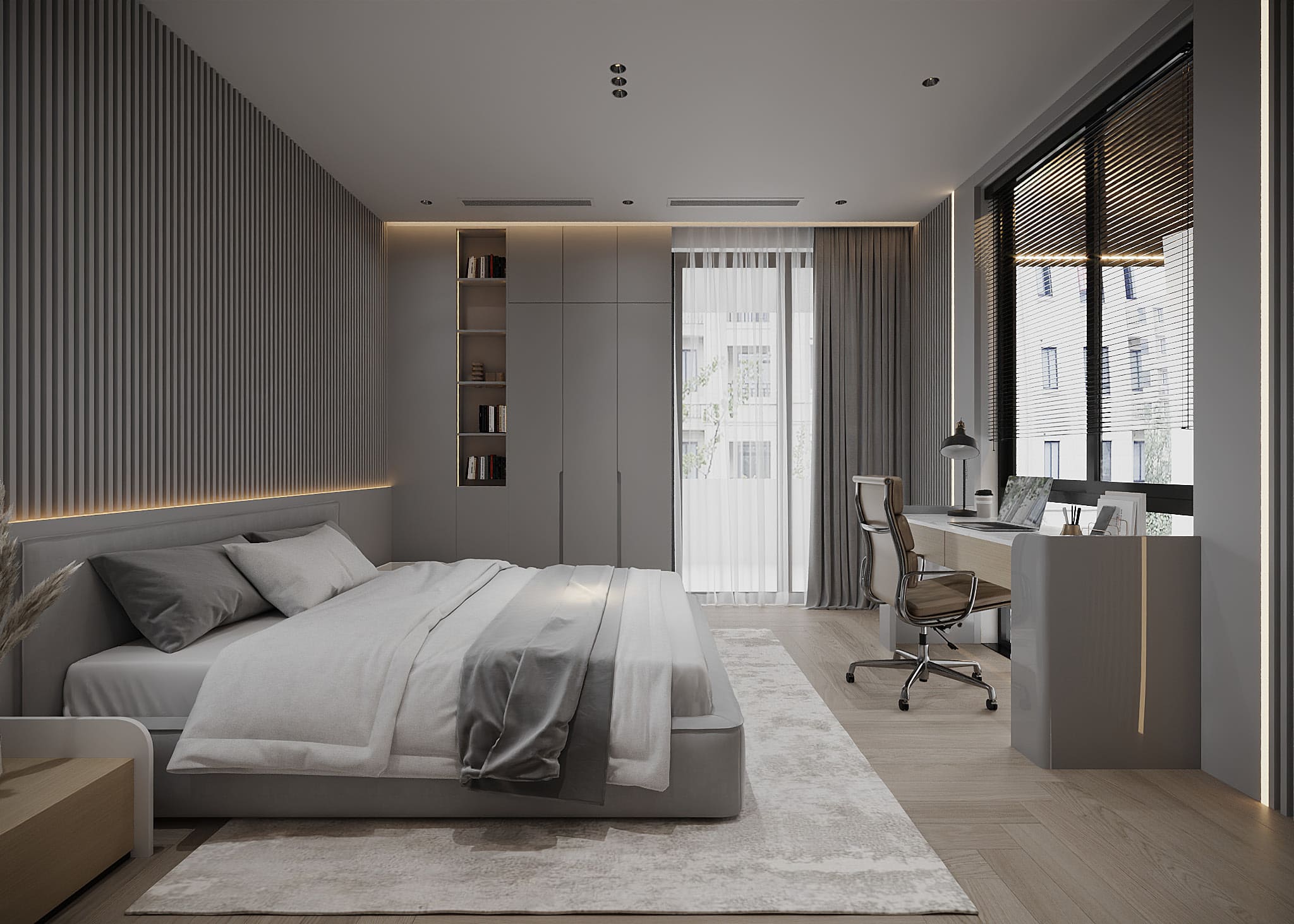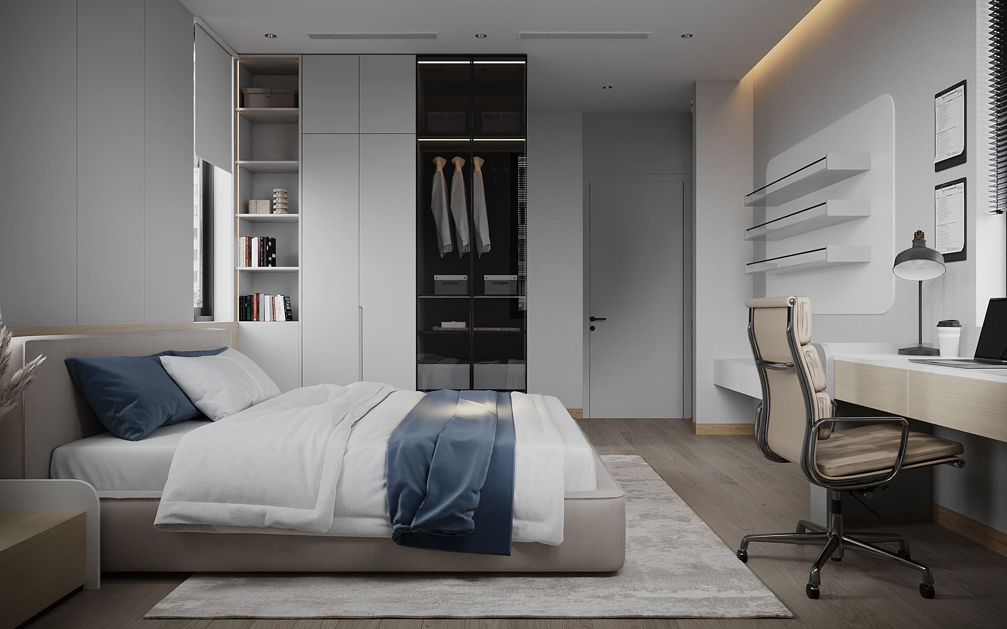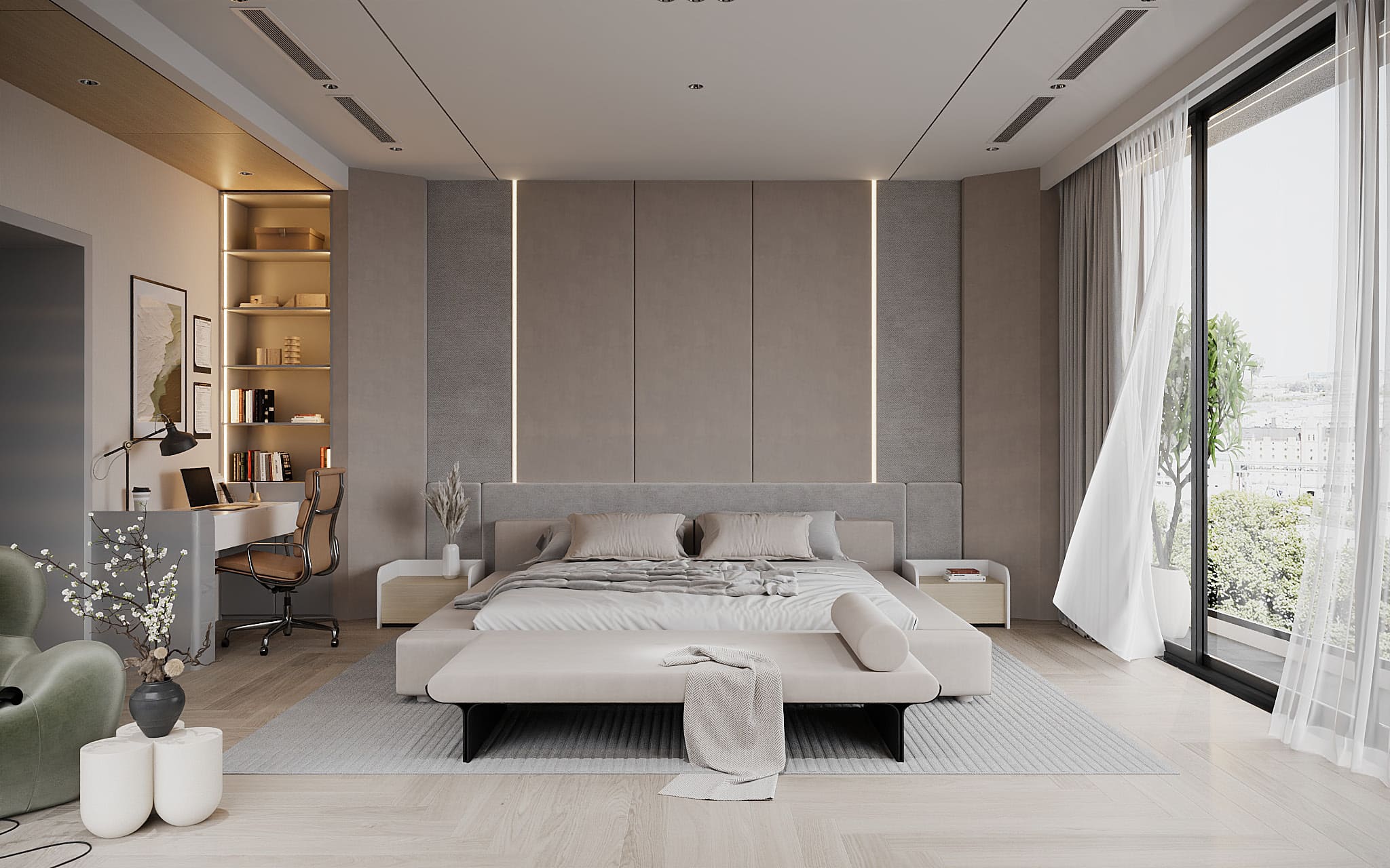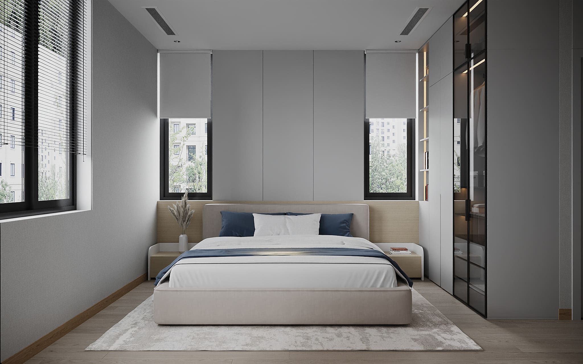 Phòng ngủ: sử dụng chất liệu gỗ cao cấp, mang đến sự thư giãn và riêng tư.