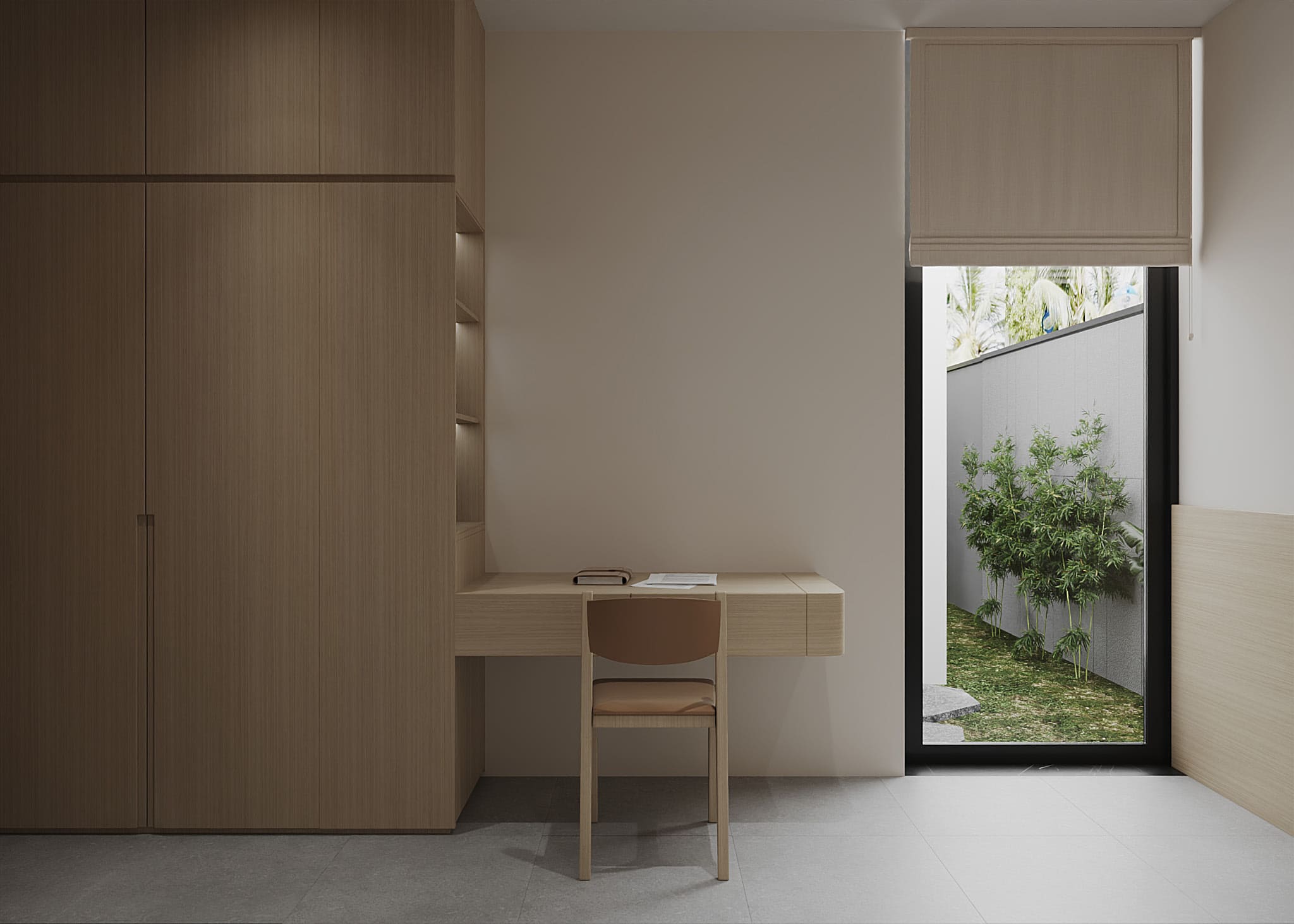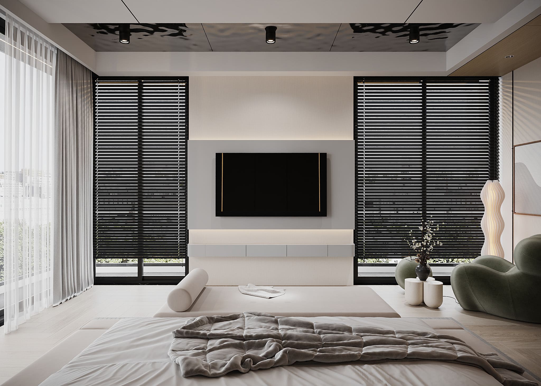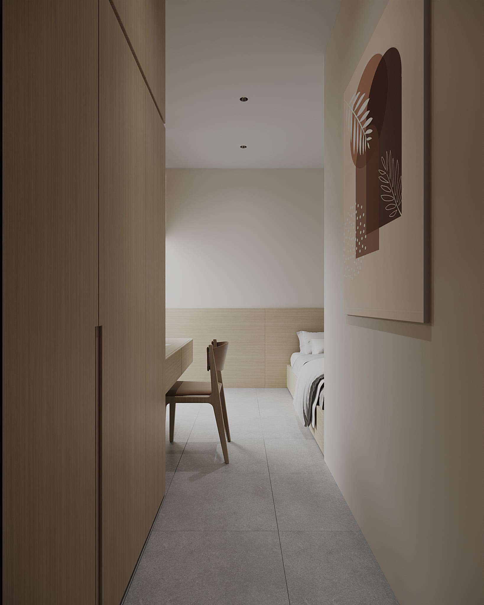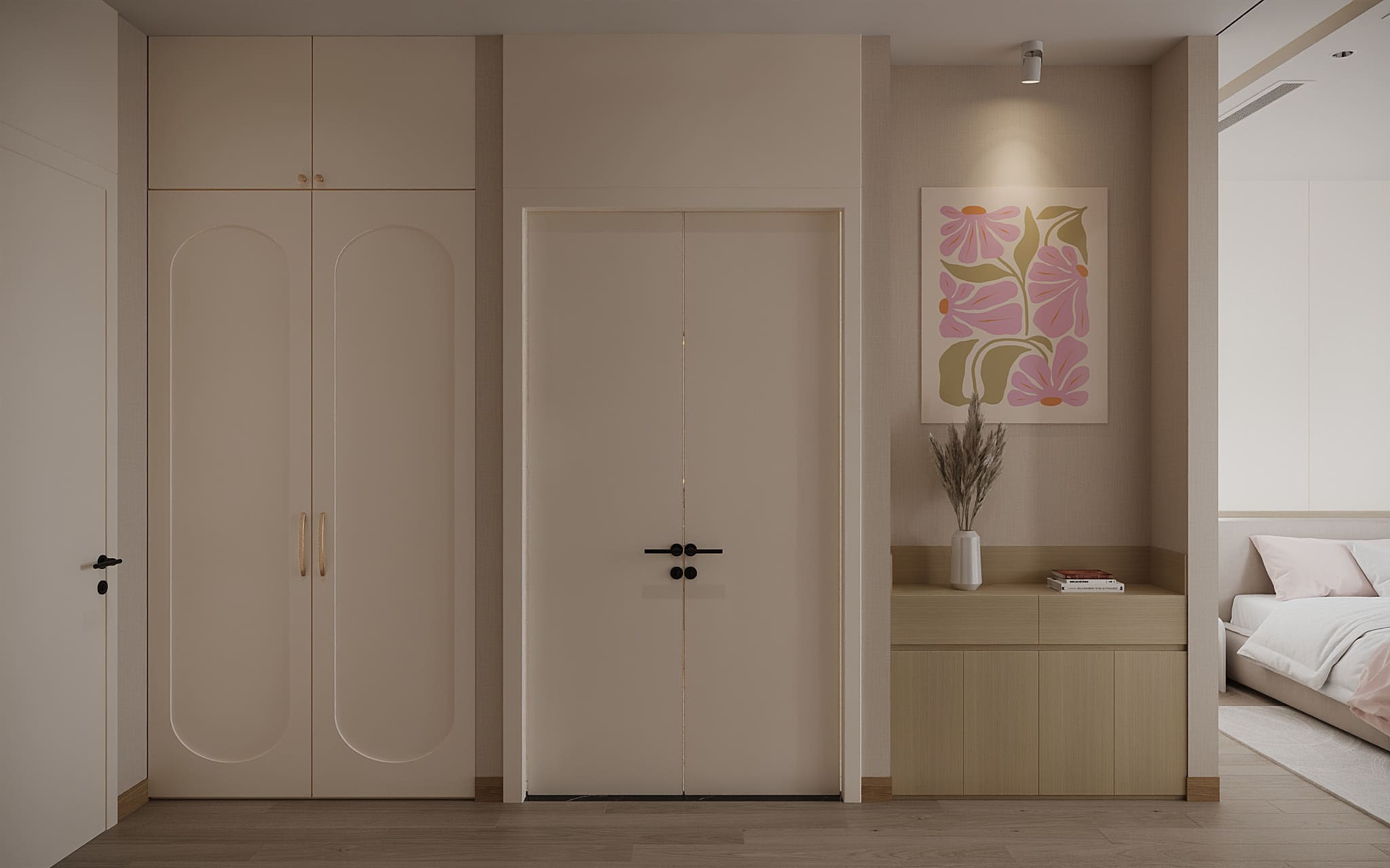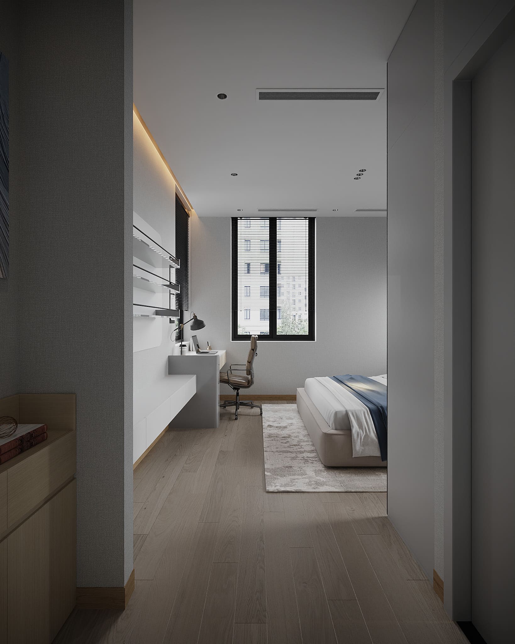 Phòng ngủ: sử dụng chất liệu gỗ cao cấp, mang đến sự thư giãn và riêng tư.