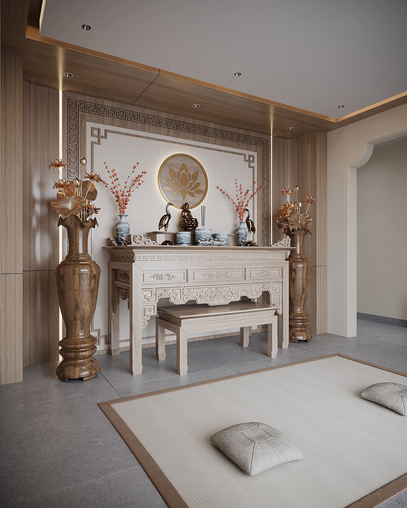 Phòng thờ và các không gian phụ trợ: đảm bảo chuẩn mực phong thủy và tính tinh tế.